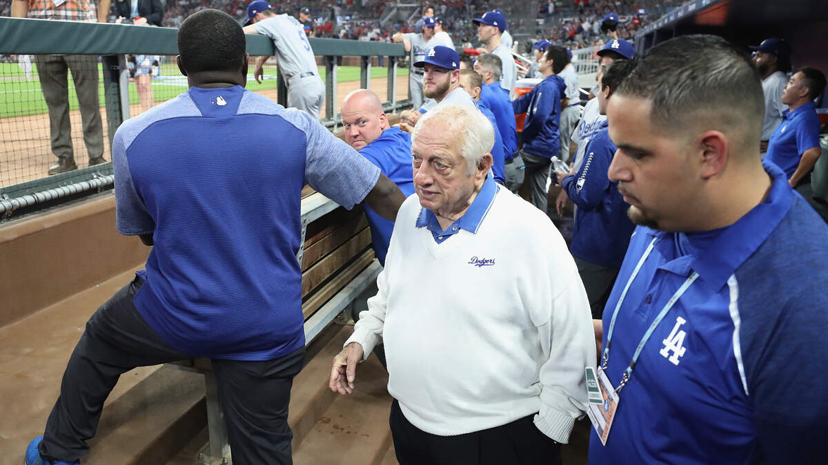 Lasorda attended Game 6 of the World Series when the Dodgers beat the Tampa Bay Rays to win the franchise's seventh world championship. He managed the Dodgers for 21 seasons, winning the World Series in 1981 and 1988.